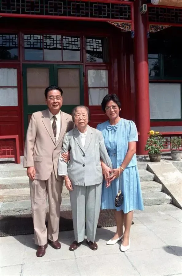 1986年,邓颖超同志和李鹏同志及夫人朱琳在北京中南海西花厅合影。 新华社记者 王新庆 摄