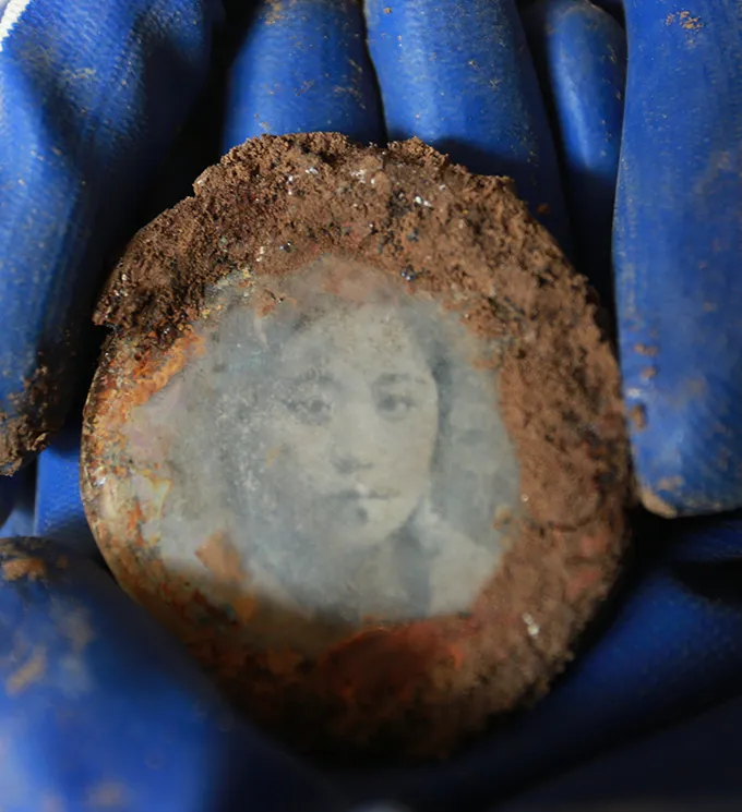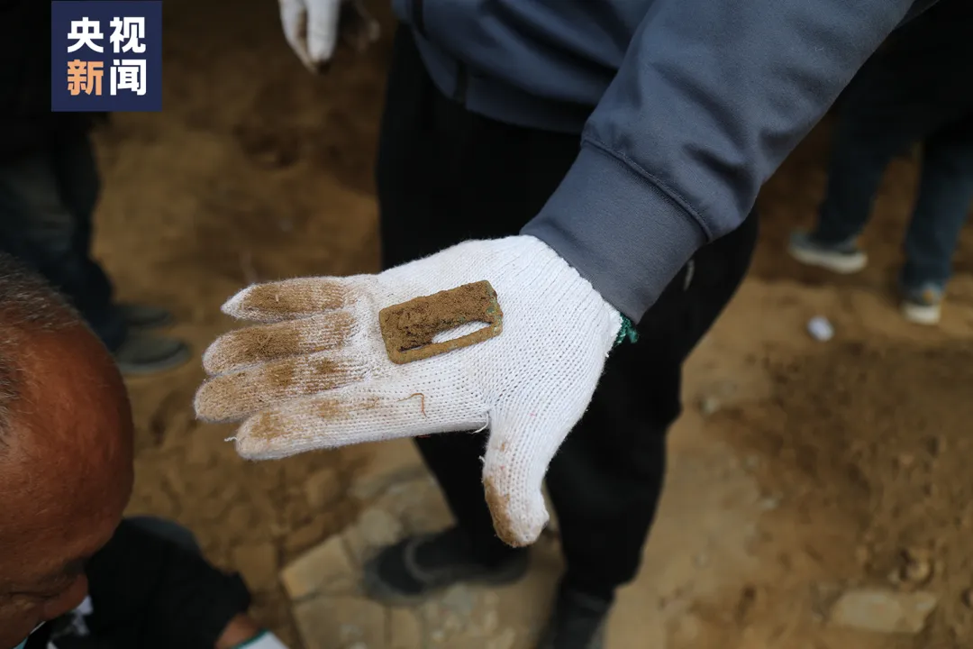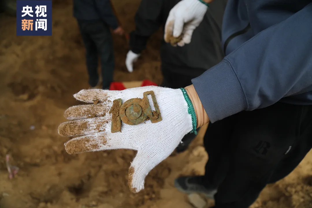 随同遗骸出土的还有子弹、帽徽、皮带扣