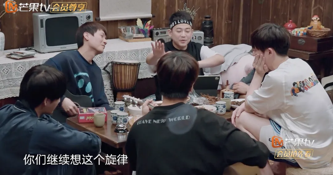 围成一桌开始编歌,嘴没到场的人的吗↓