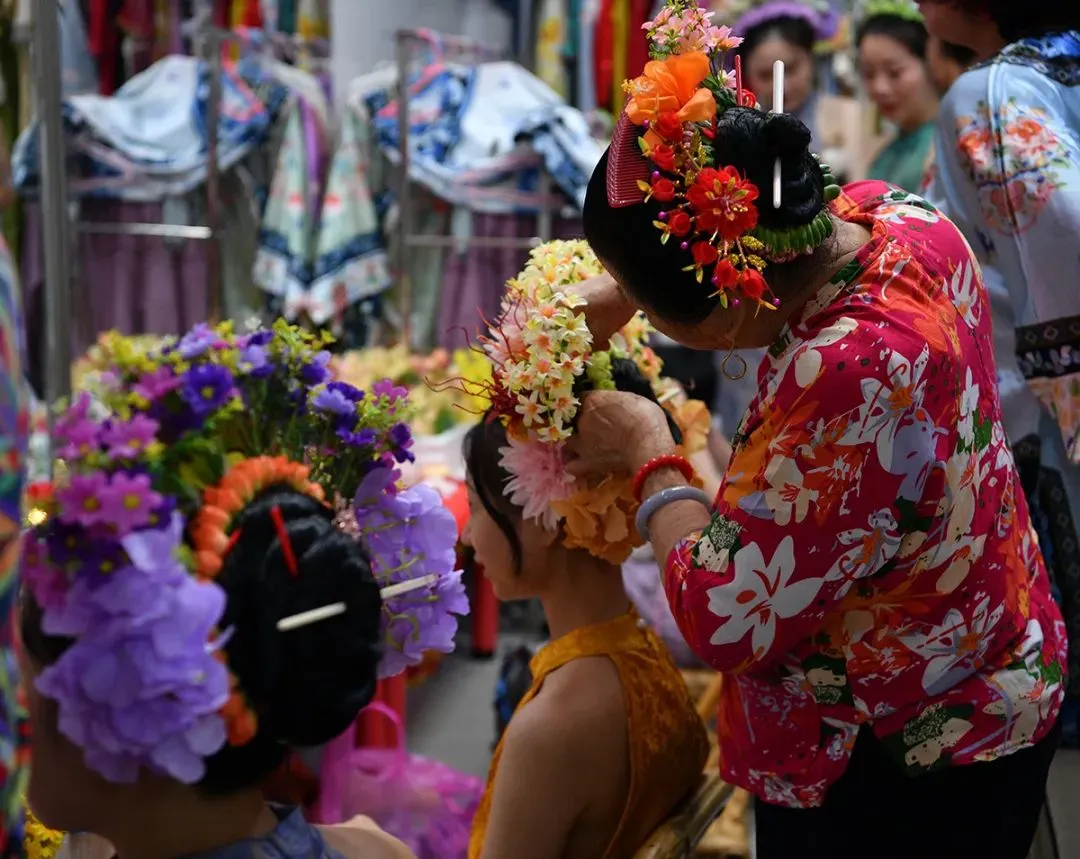若想体验赵丽颖的同款簪花围,本地行程的目的地--蟳埔民俗文化村。现蟳埔村是原居民居住,原生活,蟳埔女头上戴着鲜花,盘着漂亮的簪花围,可称是移动的“海丝花园”。