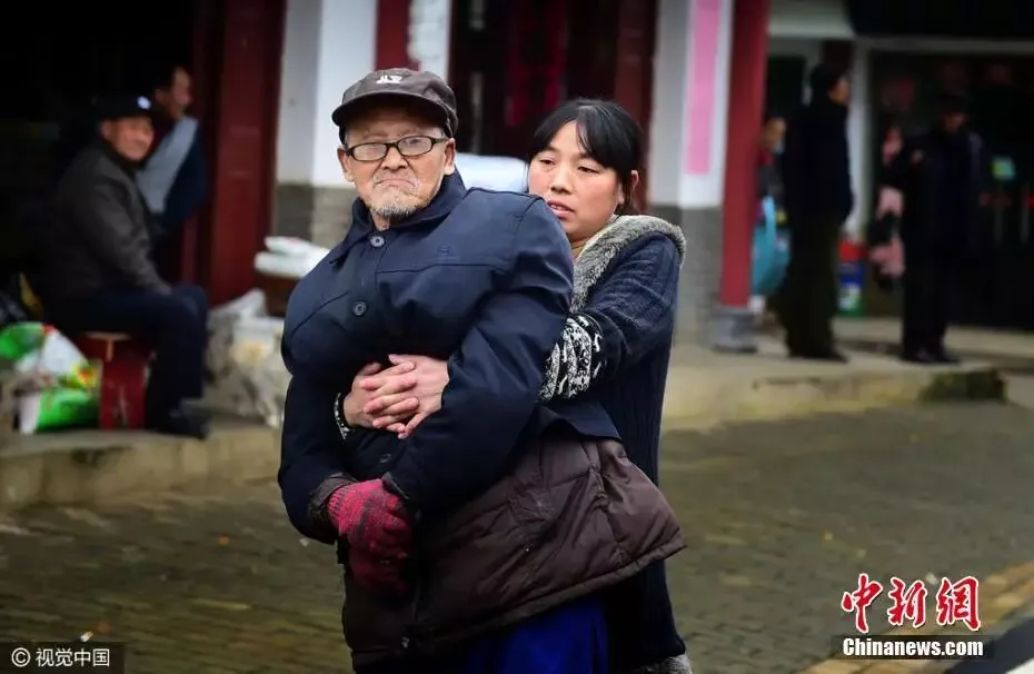 抱着父亲,他们一起前行