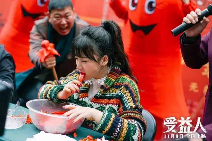 电影里的岳淼淼出身草根,个性热闹又接地气,柳岩的表演也跟着“放飞”了一把,比如骑电动车摔个大跟头,化着浓妆在直播间卖萌跳舞,参加吃辣椒比赛被辣到说不出话……为了演出真实感,她还往辣椒上挤了不少芥末。