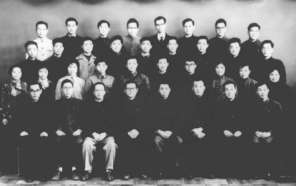 1963年3月,江泽民同志(前排右五)在上海同小型三相异步电机全国统一系列设计领导小组成员合影。新华社发