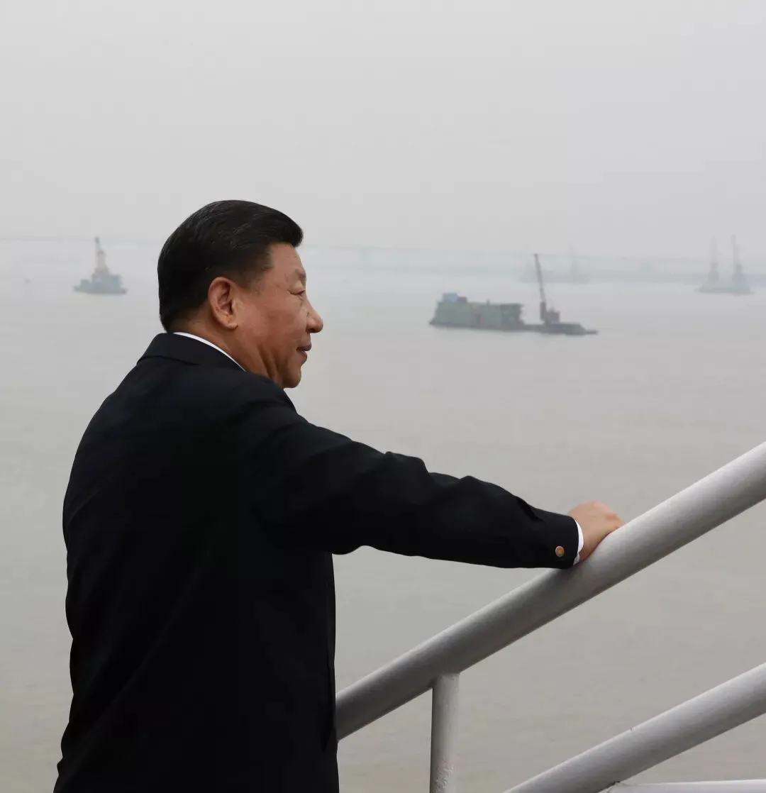 2018年4月25日,中共中央总书记、国家主席、中央军委主席习近平在湖南省岳阳市城陵矶水文站考察。新华社记者 鞠鹏 摄