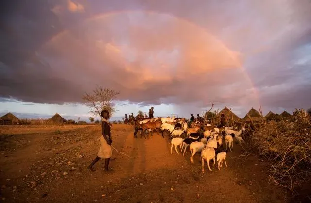 2018年10月25日,在埃塞俄比亚南方州的哈莫族村子,一名哈莫族人在赶羊群。新华社记者 吕帅 摄