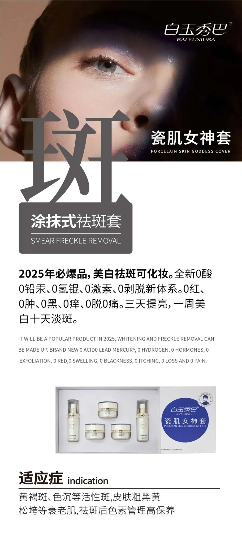 白玉秀巴瓷肌女神套:涂抹式淡斑焕白,悄悄拥有透亮瓷肌