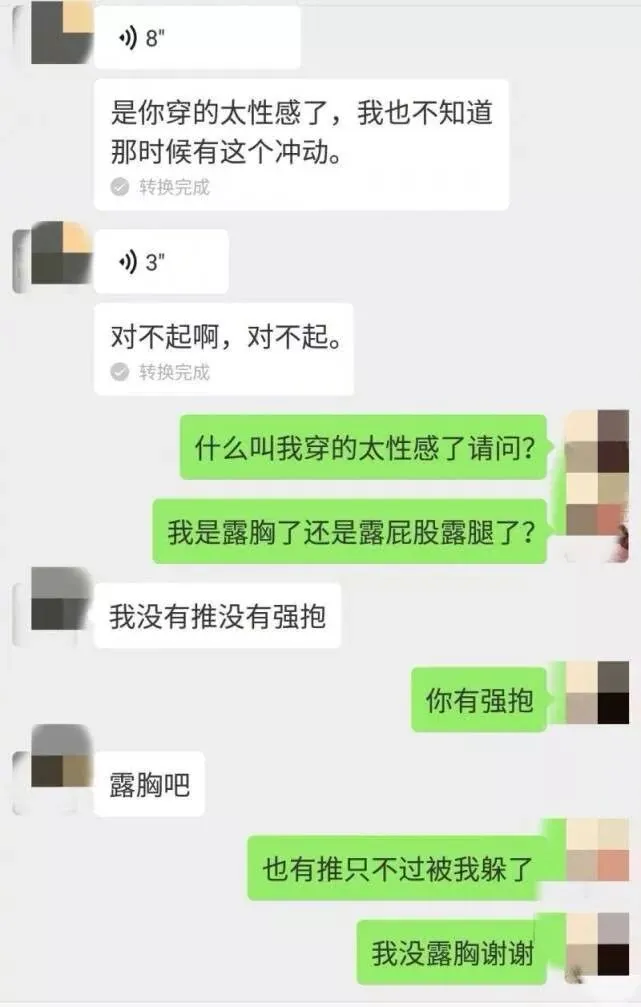 事后,小年在微信上质问快递员,对方为自己的行为道歉,并表示看到小年穿着性感,自己当时比较冲动。