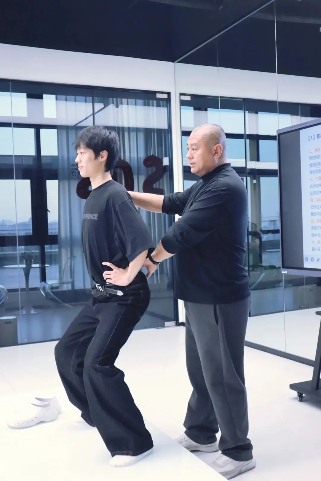 这一部分,由延华导演作为主讲导师。课堂上,延导深入浅出地讲解人体黄金比例、身体与空间的坐标体系、二分一法则、十字架结构、三角区概念等人体解构与训练构建理论,从形体矫正与塑造到柔韧与协调,再到力量与控制,延导将二十年的理论与实践融入教学系统,解决业内教学痛点。