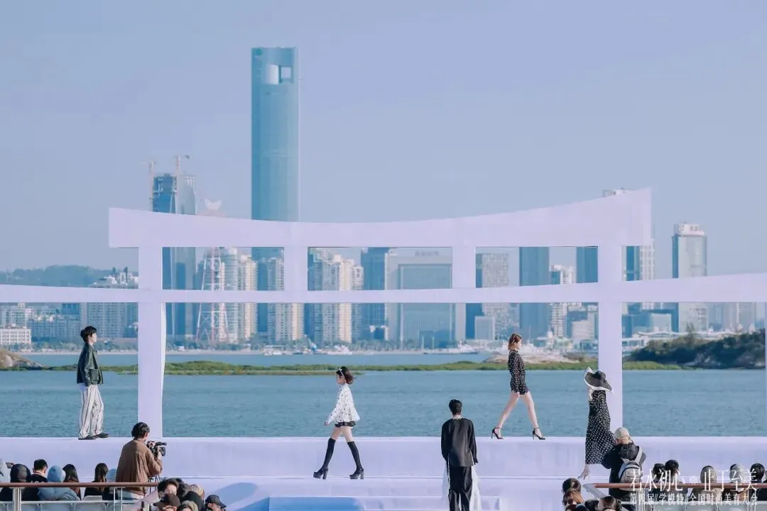 以海沧湾亲水平台为T台,碧海蓝天为幕,共同演绎沉浸式时尚盛宴。老、中、青、少四代超百位超模范儿同台,生动诠释“全龄时尚”的包容与魅力。