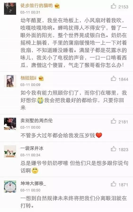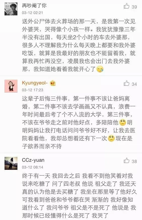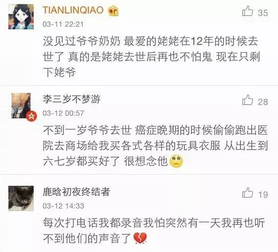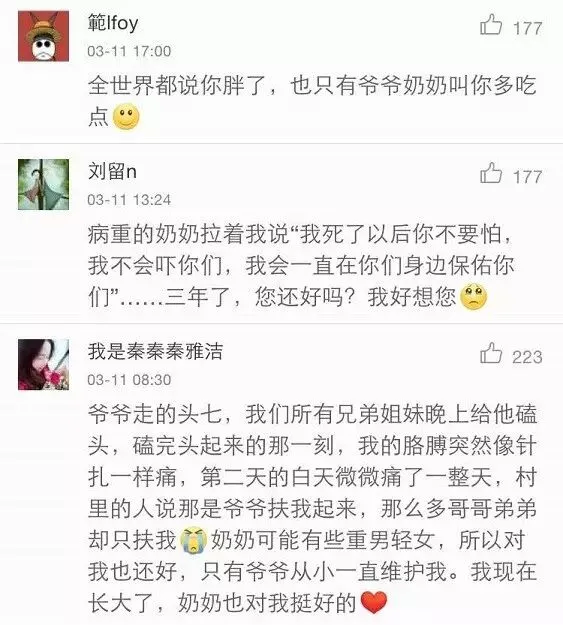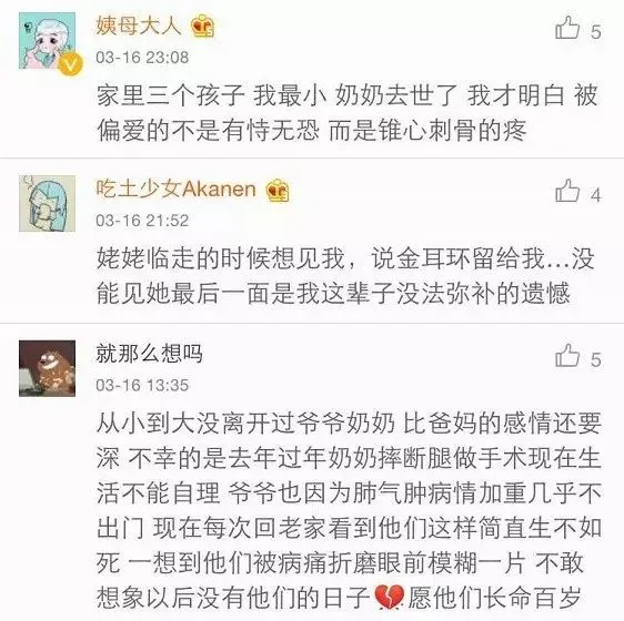 网友们讨论了跟爷爷奶奶的感情,