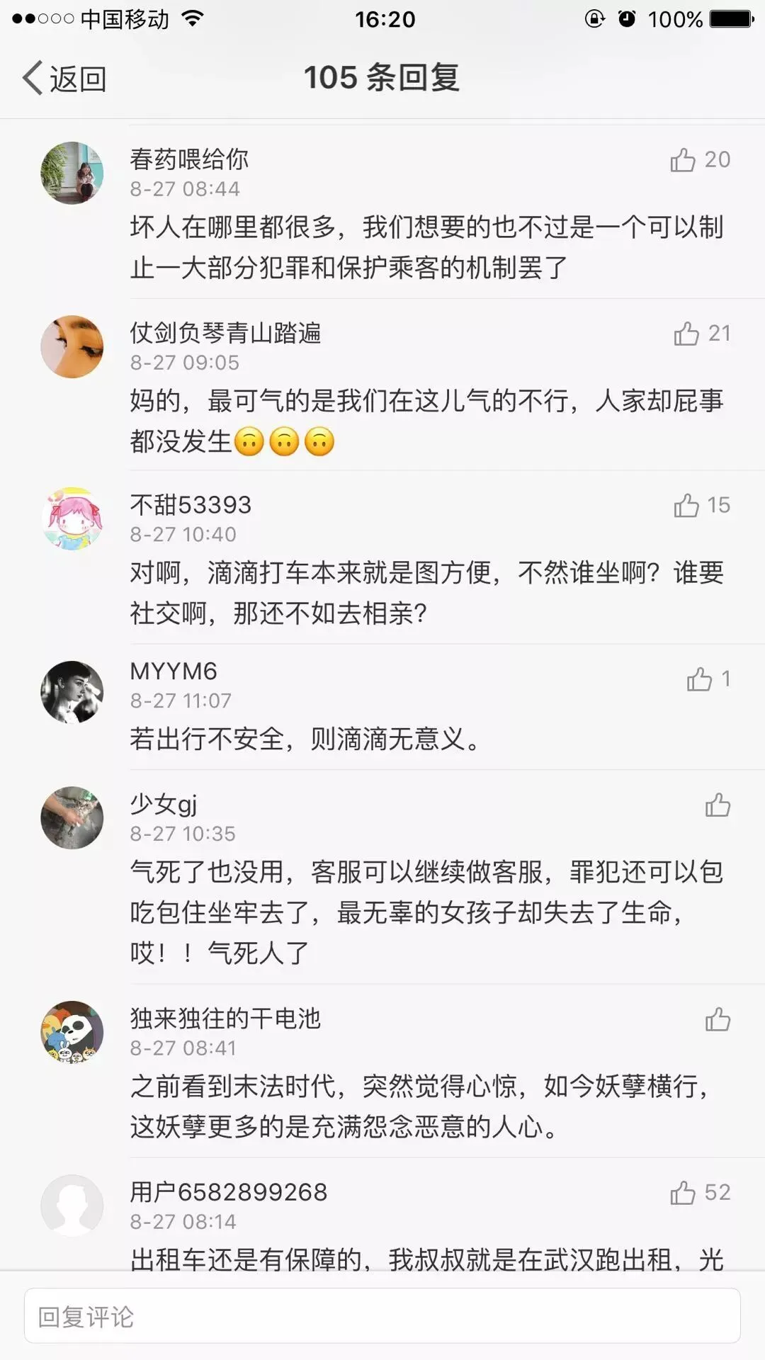 有网友表示,罪犯才是关键,每个职业、性别、年龄、地区的人都会有坏人,出租车以前命案少么?滴滴凉了黑车能更可靠么?