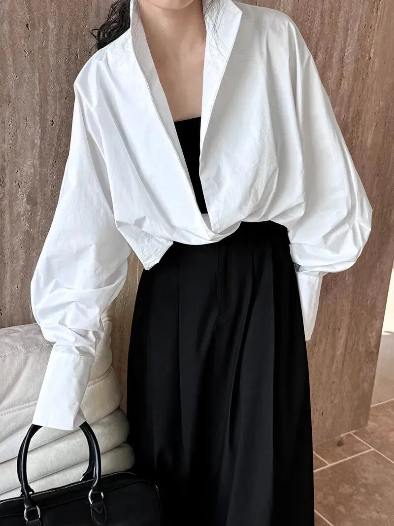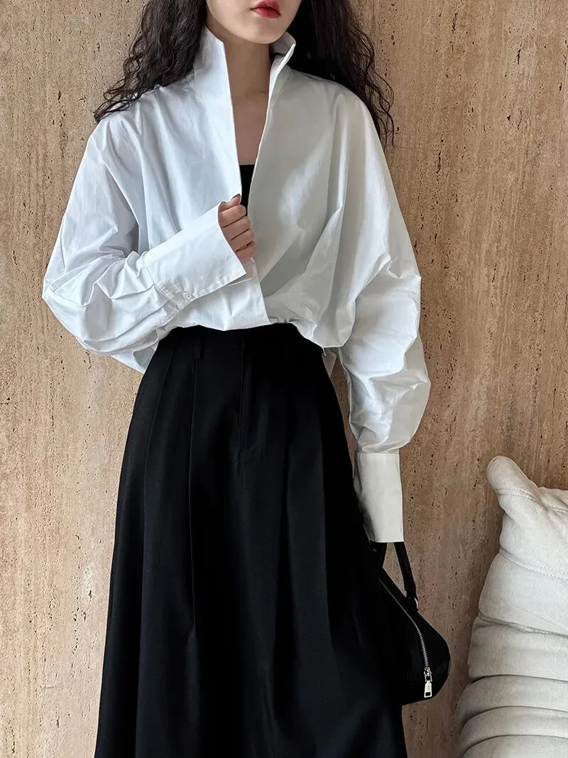 今年开春穿搭太美啦!廓形叠穿立领深V领白衬衫,慵懒蝙蝠袖气质大版通勤衬衣,优美而美丽可爱了。让你与众不同最时尚了!今年“咖棕色”这么穿太美啦!