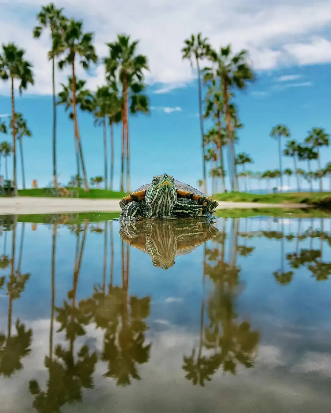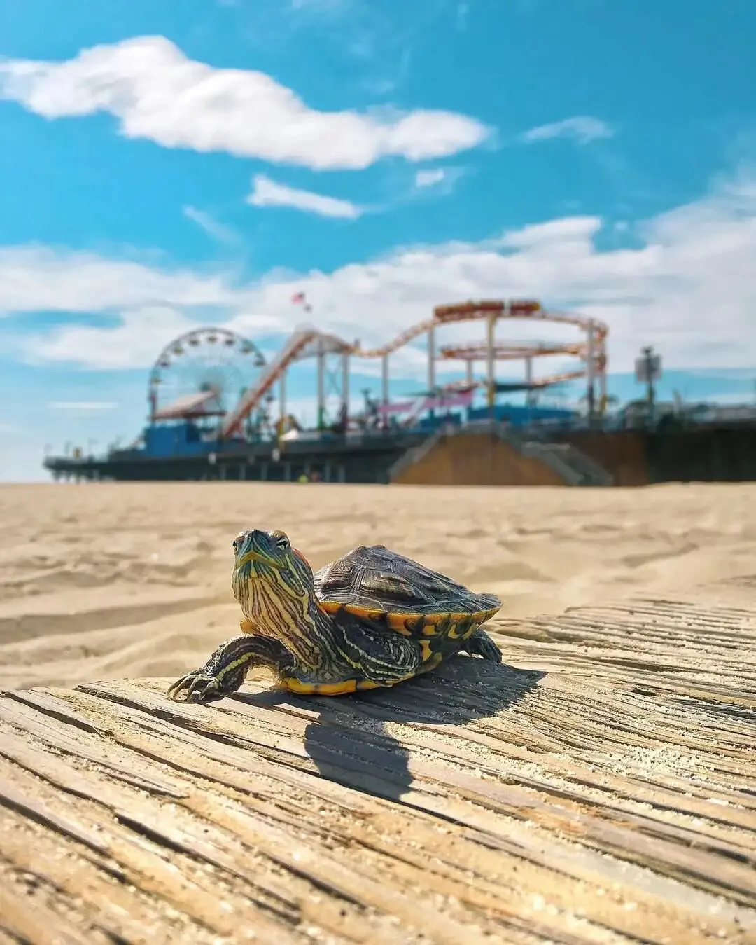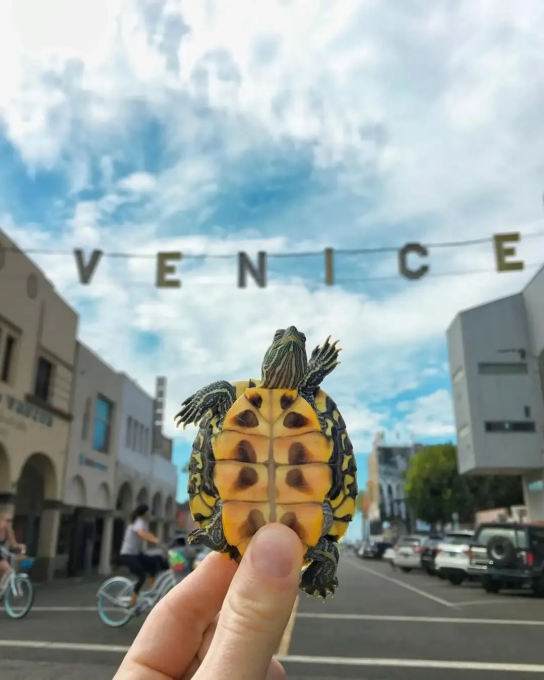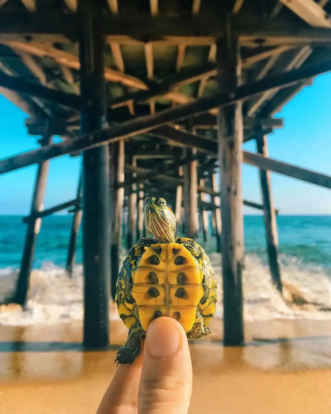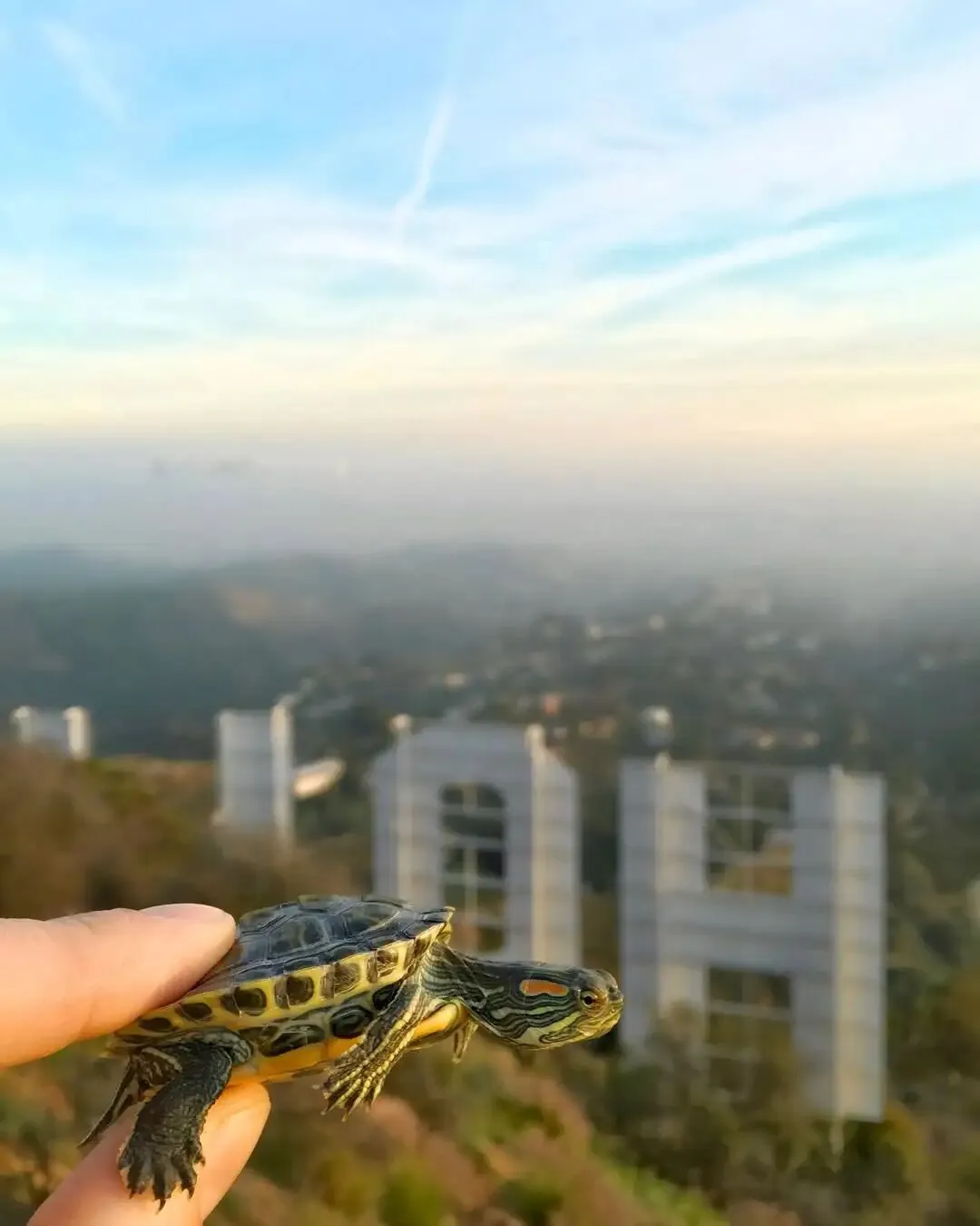 这些照片,与其说是风景照,不如说他在秀斜方肌,除了这个系列以外,还有一个乌龟星期二,就是每星期二他都会发布一张自己的乌龟宠物的照片,拍摄的场景自然是世界各地哪都有,简直羡煞一众打工人~