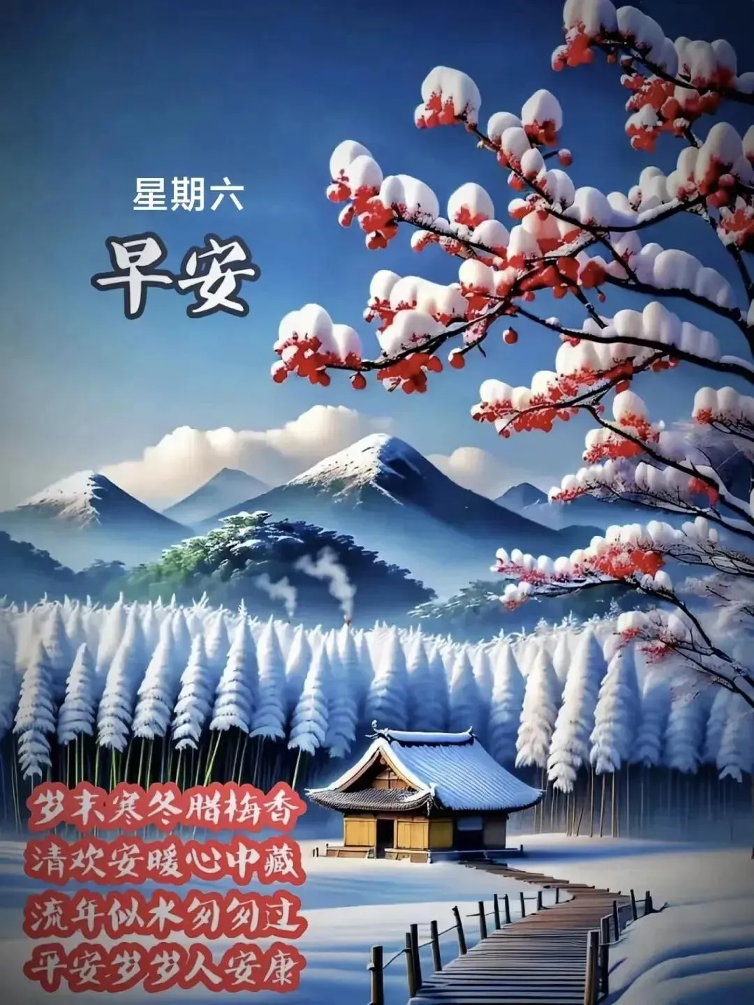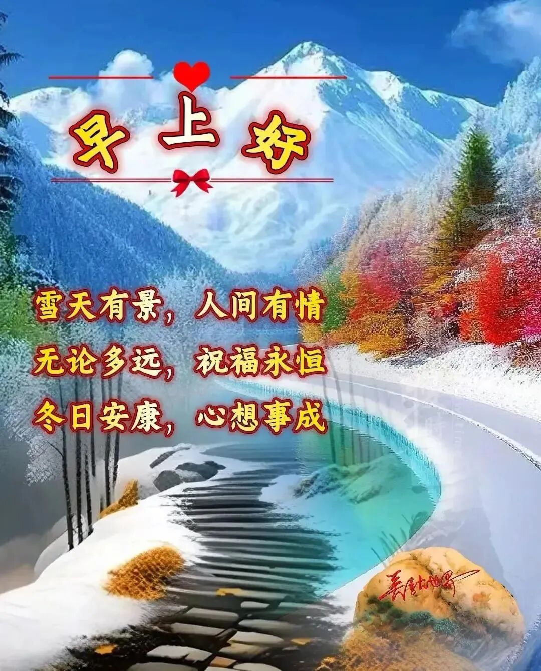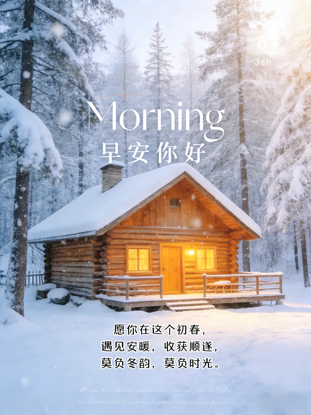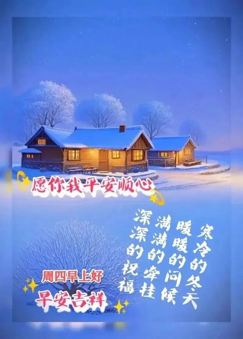 雪花是天空写给大地的长信,片片飞舞,诉说着纯洁与美好。它掩盖了尘世的荒芜,只留下一片洁白等待新绿。愿你的心灵如初雪般无瑕,在冬日里闪闪发光,早安!冰封的河流下藏着奔腾的渴望,沉睡的种子里孕育着破土的力量。冬天不是结束,而是沉淀。愿你在这蛰伏的时光里,积攒能量,只待来日厚积薄发,惊艳时光,早安!