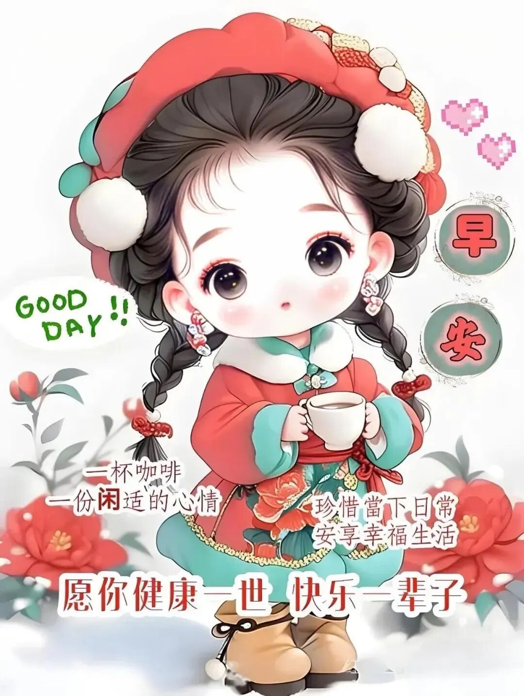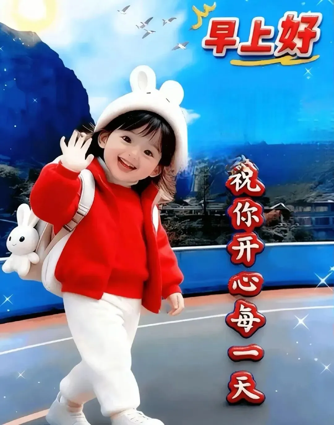 早安哟!清晨的微风像温柔小手,轻轻抚摸着你。新的一天是“冒险之旅”,充满了未知和惊喜。别害怕困难,像小勇士一样勇往直前,去征服属于你的“新大陆”,加油!
