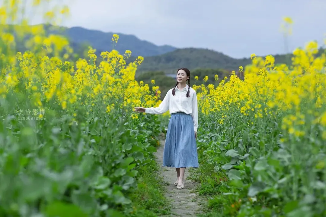 蜜蜂飞舞,彩蝶蹁跹,漫步田埂间,油菜花海宛若母亲一般张开怀抱。