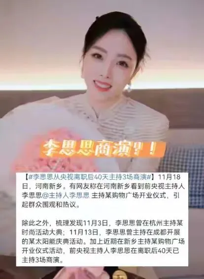 李思思离职央视百天大反转:春晚女神沦落县城商演,网友炸锅到底发生了啥