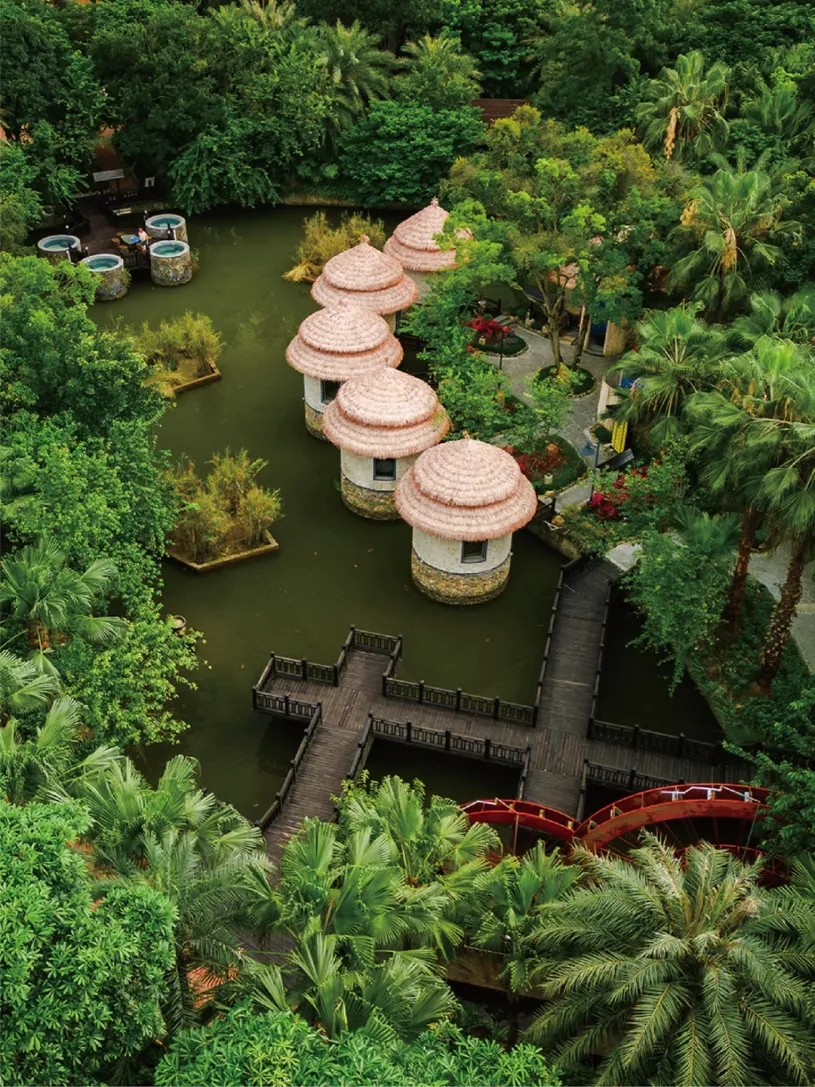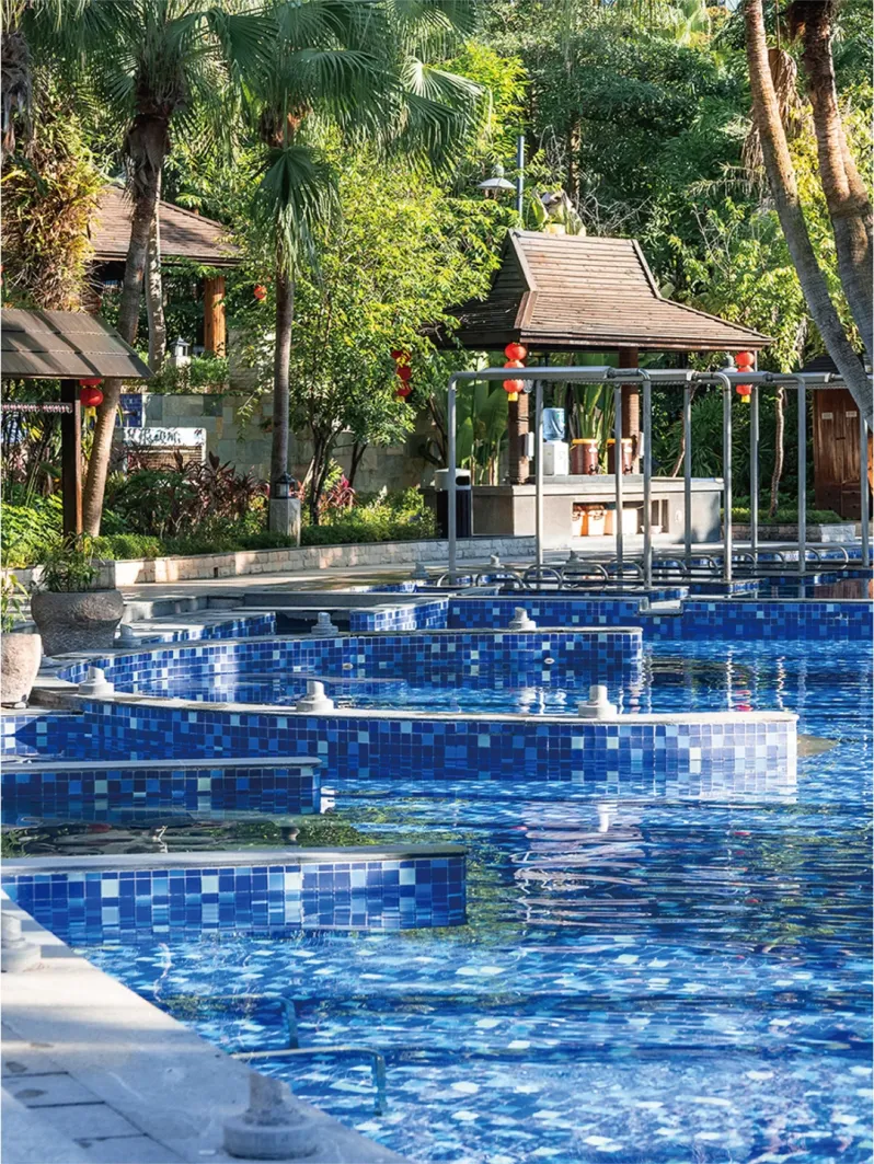 园区内有138个特色温泉泡池,浸泡其中舒缓身心,养生润肤、祛湿除寒。