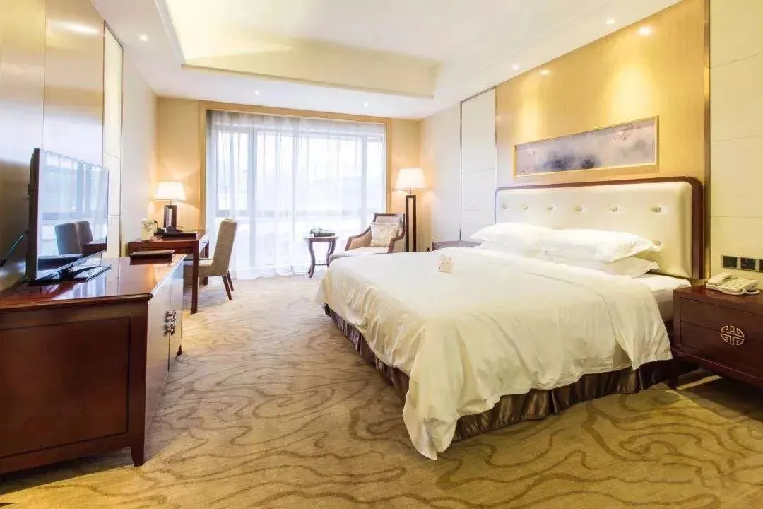 进入房间,大大的落地窗外,清风拂过,听流水潺潺,看白云飘过。大床一看就很松软,选一天睡到自然醒,简直美妙。