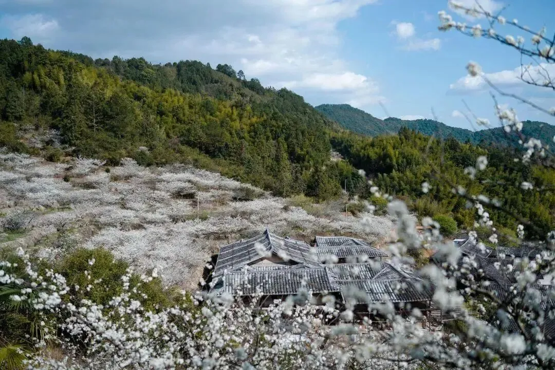 10:30抵达前往【月洲村】赏花,闯入现实版世外桃源,从村部的剧场出发,站在大喜水库上的观景台,环顾四周,漫山遍野开满清新纯白的李花,洁白而美丽。林荫小道伴随着茉莉花香,仿佛置身于梦境一般,村里的古木丛林、古道、古桥、特色民居建筑,依然保持农耕文化的原生态,是回归自然,探幽寻梦的地方。(温馨提示:花期大约在每年的1月中旬至3月上旬,观赏效果受当地天气等自然因素影响,如未达观赏效果或观赏不到,不产生任何退费或投诉赔偿,敬请谅解。)