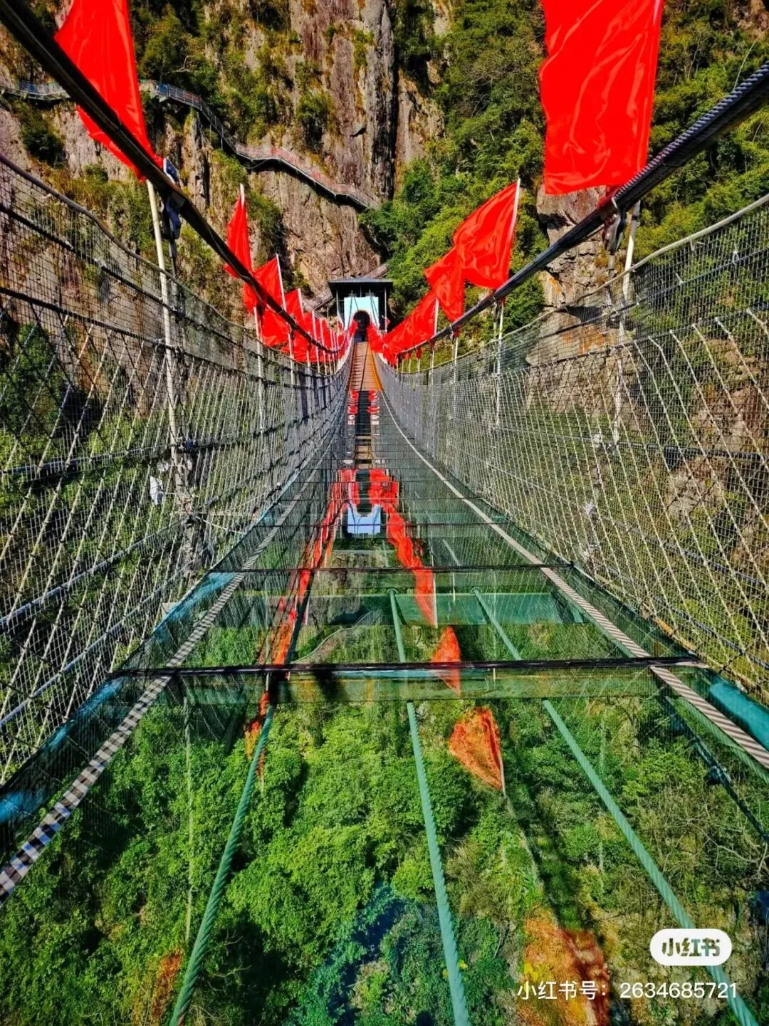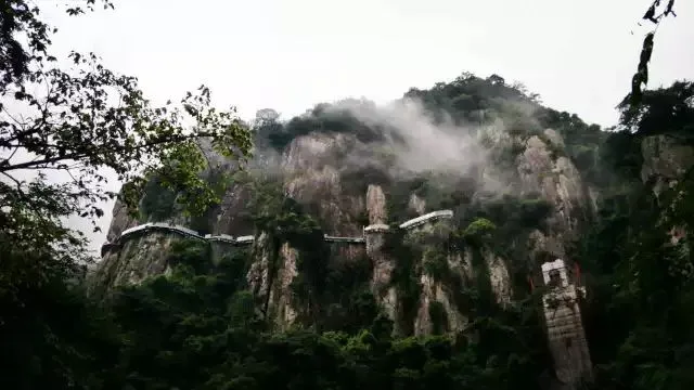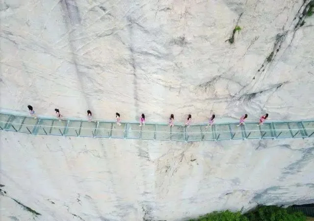 当然提起天门山,它还有一个——“天门山悬崖玻璃栈道”,全长约110米,桥宽1.5米、落差188米、是目前省内在建的玻璃栈道中落差最大的悬崖栈道。