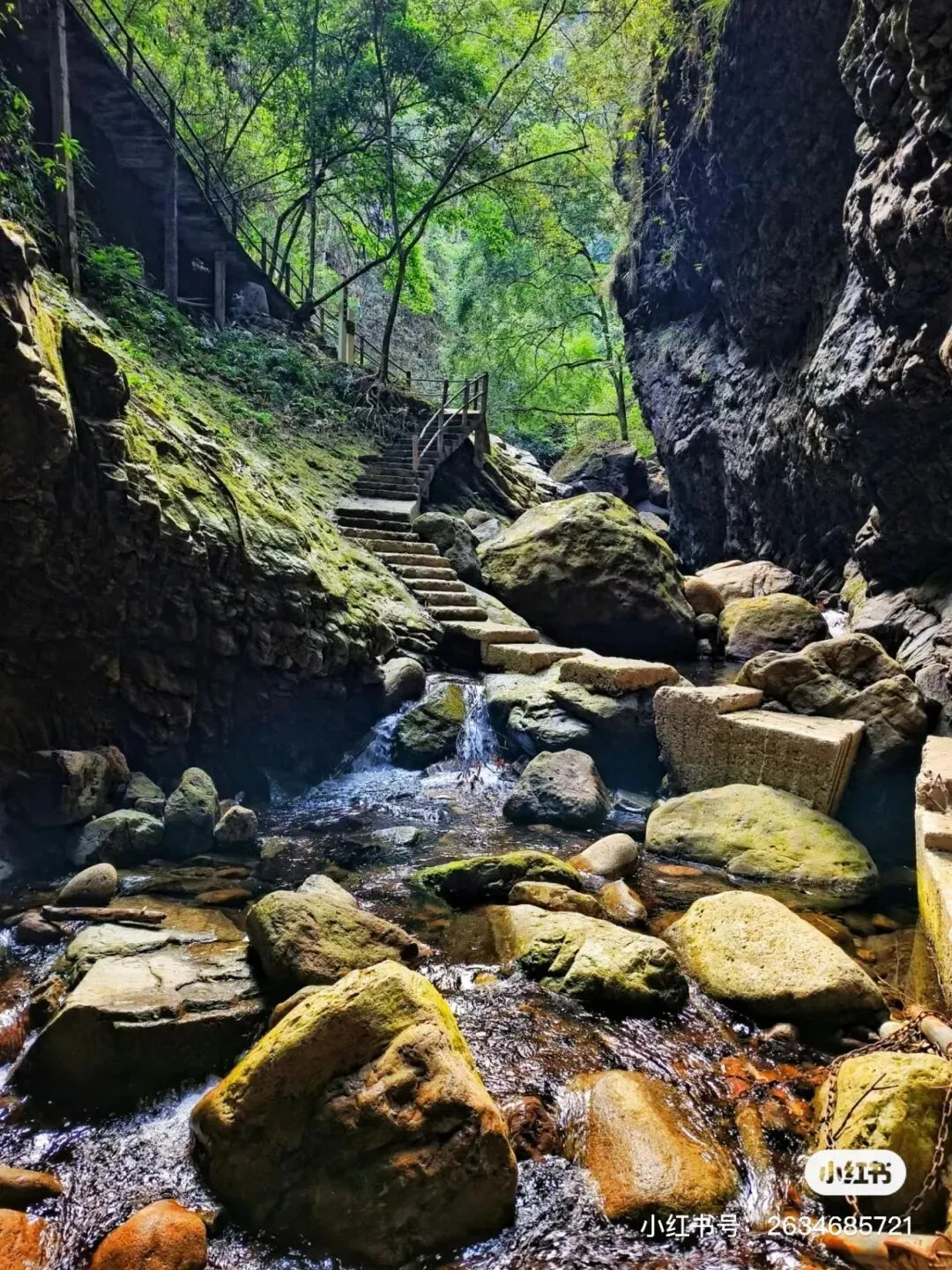 几条大溪贯穿山谷,水流清澈,两岸怪石嶙峋,沿途有大大小小众多的瀑布。