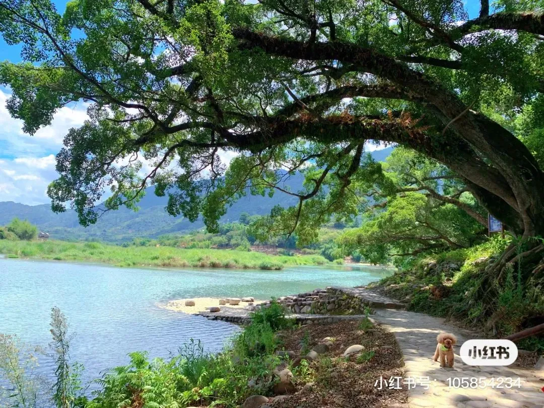 后出发游览永泰版“云水谣”之【榕水谣】,山清水秀,清风徐徐,风景如画。沿河岸 20 多棵古榕,在大樟溪畔旁有 2 棵五百多年的大榆树静静伫立在那,见证岁月的沧桑。漫步老榕树步道、古渡头,至今有 600 多年历史的三爷宫一座,始建于明朝,年代悠久……湖光、山色、古树、老建筑、美食......可谓是“厝厝均有文化,满街都是历史”。