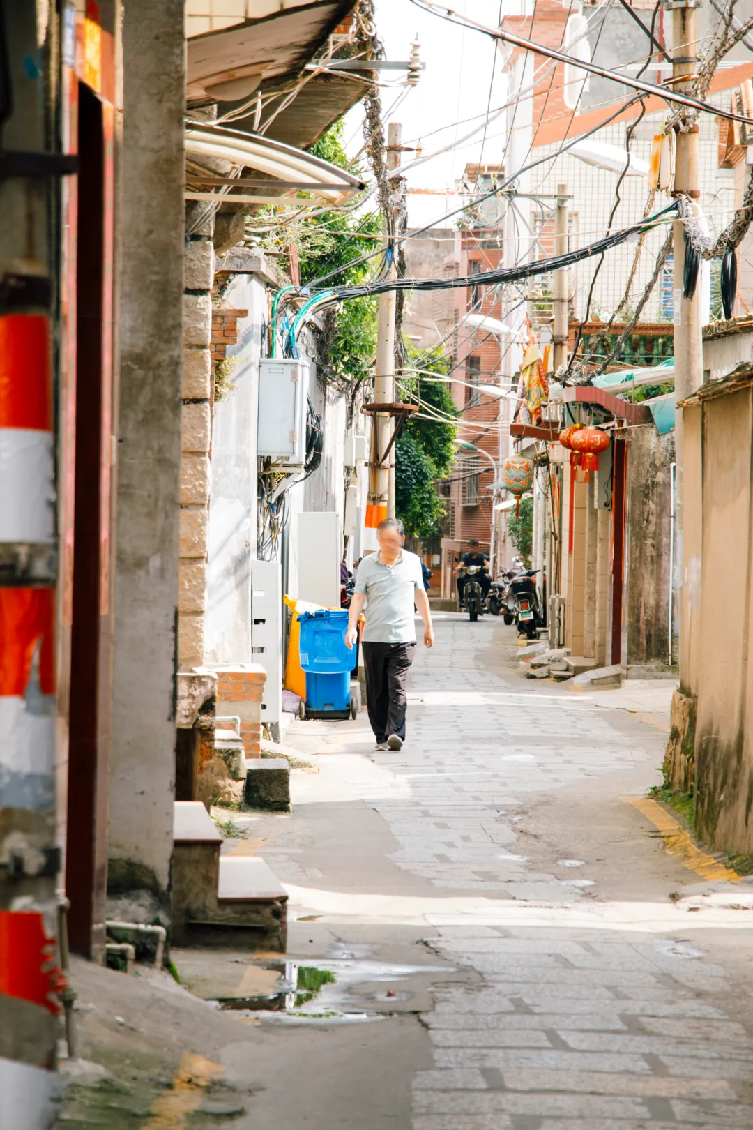 往小巷深处走,巷子的宽度逐渐收窄。原本随意走两步就能看到的电动车,到巷尾也慢慢减少,只有年迈的老人匆匆路过。