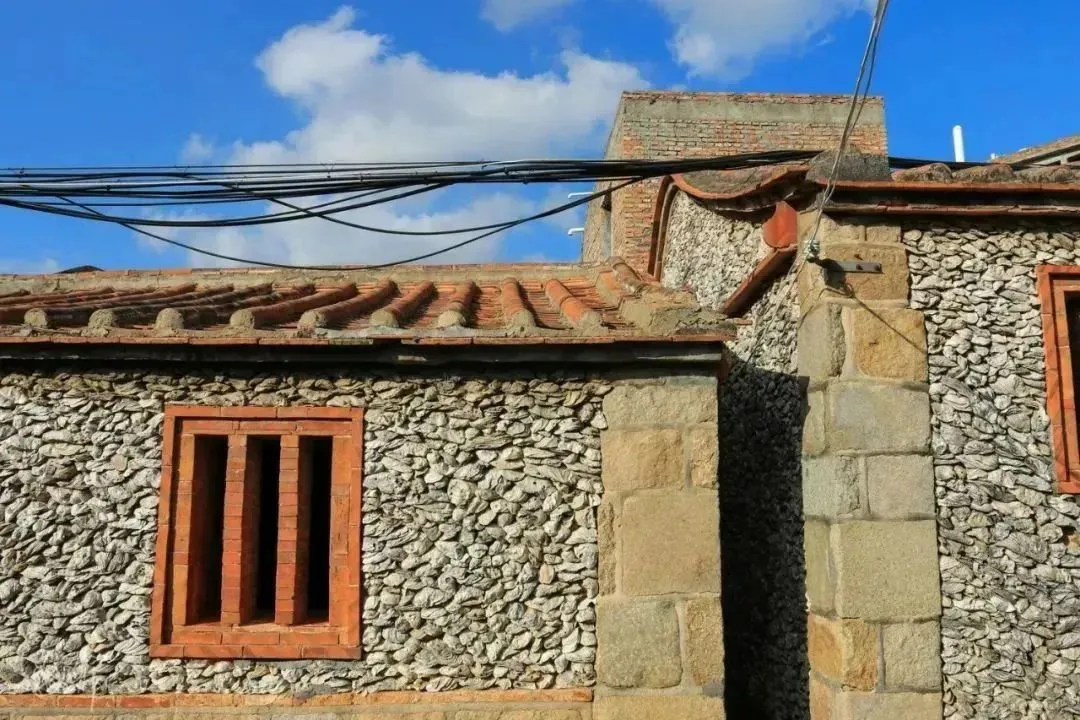 走进蟳埔村,放眼望去是一堵堵像鱼鳞似的独特墙面,这就是蟳埔村的特色建筑——蚵壳厝建筑,建筑主要是用蚵壳、砖石组合砌成的。利用所处位置独特的资源优势,就地取材,用蚵壳墙体取代普通的红砖墙体。
