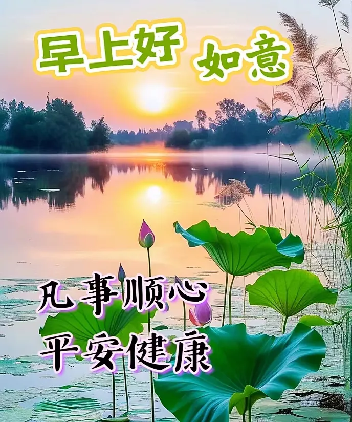 9、让清晨的旭日带给你幸运,让飞扬的柳枝带给你激情,让蔚蓝的天空带给你梦想,让午夜的星辰带给你甜蜜,让我的祝福带给你一份愉悦的心情,祝福平安!早安!