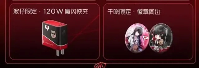 最让玩家惊喜的是,这款限定版还附赠多款千咲专属周边,性价比直接拉满,收藏价值十足。包括千咲限定凯夫拉磁吸保护壳,1:1还原千咲角色元素,防护性与颜值兼备;千咲限定人物摆件、昙切卡针、徽章,每一款都精致小巧,不管是收藏还是日常摆放都很合适;还有波仔限定120W魔闪快充,定制外观与机身风格完美呼应,实用性拉满。
