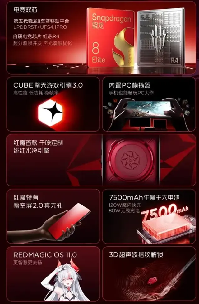 当然,这款限定版也并非适合所有人群:核心鸣潮玩家、千咲本命党,以及追求性能和颜值的重度游戏党,预算充足可直接冲,既能获得顶级游戏体验,又能收藏专属周边;但如果对鸣潮IP不感冒,只是单纯追求性价比,普通版红魔11 Pro+更合适,核心配置一致,价格更亲民。