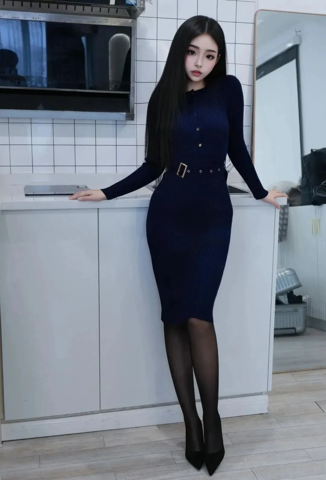当前位置:首页>美女资讯>御姐风来袭!藏蓝针织裙搭黑丝,秒变气质女神!