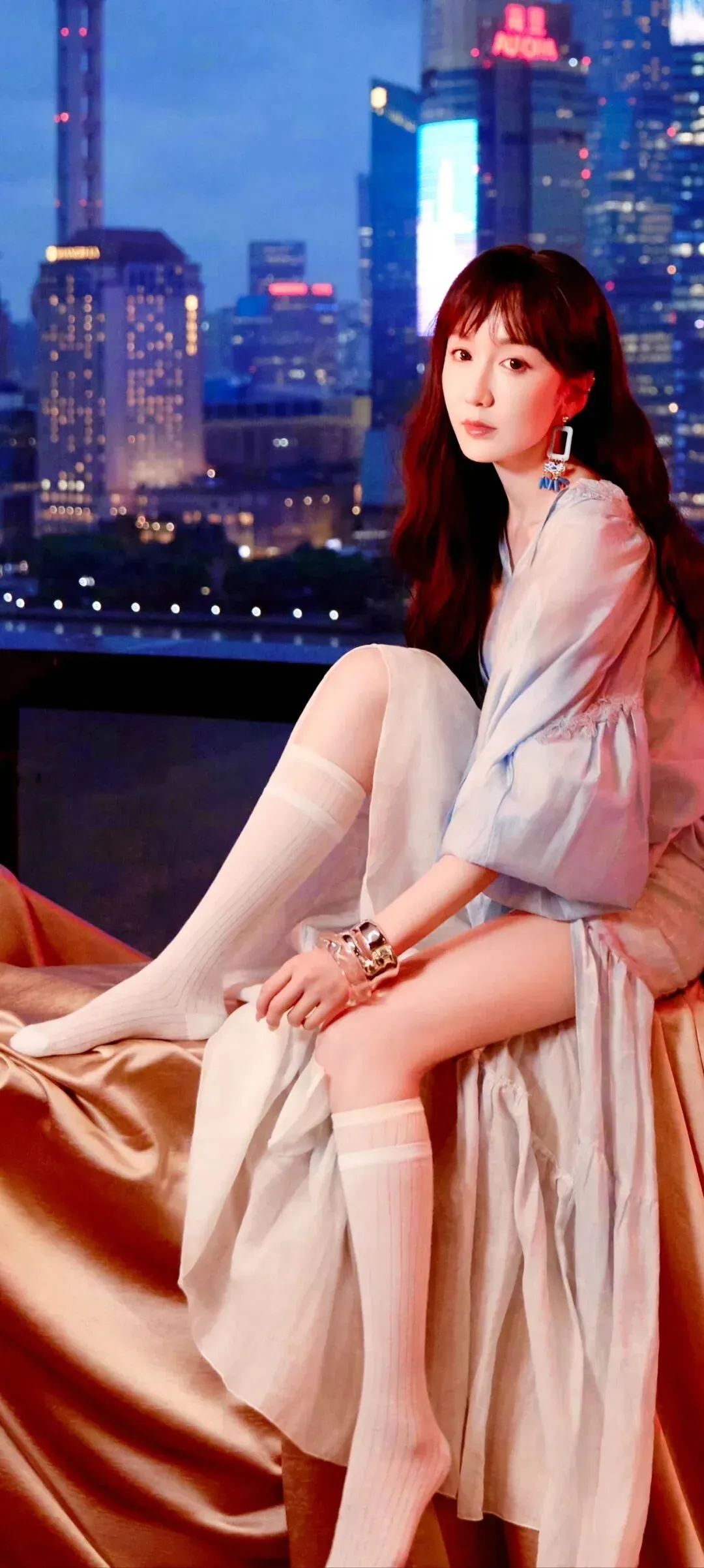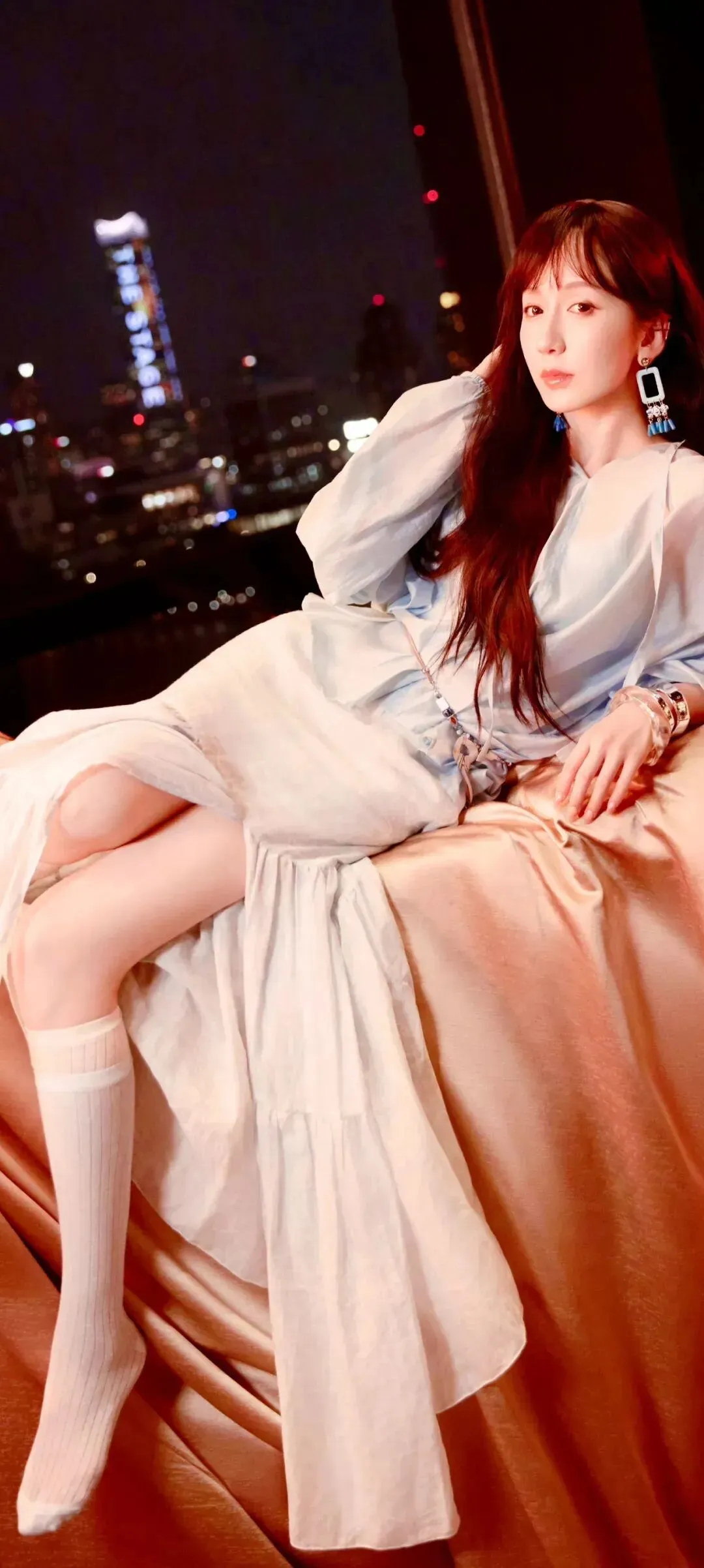 无论是站姿时双腿笔直修长的模样,还是坐姿时脚踝纤细精致的细节,都将腿部优势展现得淋漓尽致,没有一丝多余赘肉,每一处线条都恰到好处,满是优雅灵动的气质。更让人惊艳的,还有娄艺潇那透亮到发光的肌肤。在光线的映衬下,她的皮肤像是直接拿高光笔刷过一般,透着自然的光泽感,把 “水光肌” 的精髓演绎到了极致。