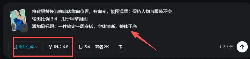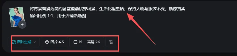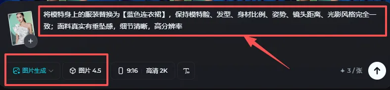 比如“替换服装为××、保持人物不变、棚拍光影、材质真实、细节清晰”