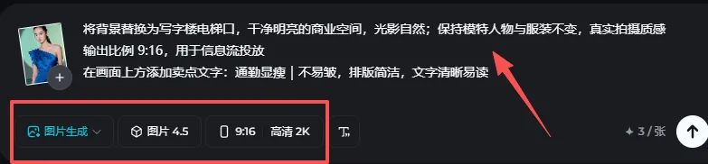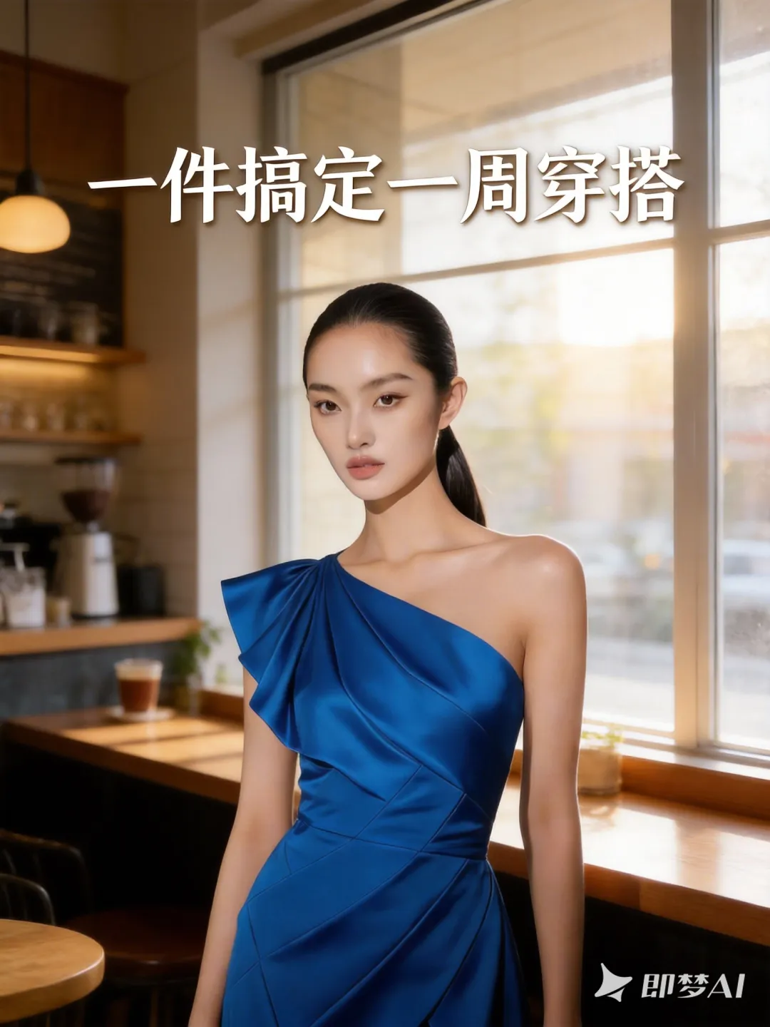 即梦实操案例 2:投放 A/B 测试素材——同一模特换装后,快速换背景、改比例、加卖点字
