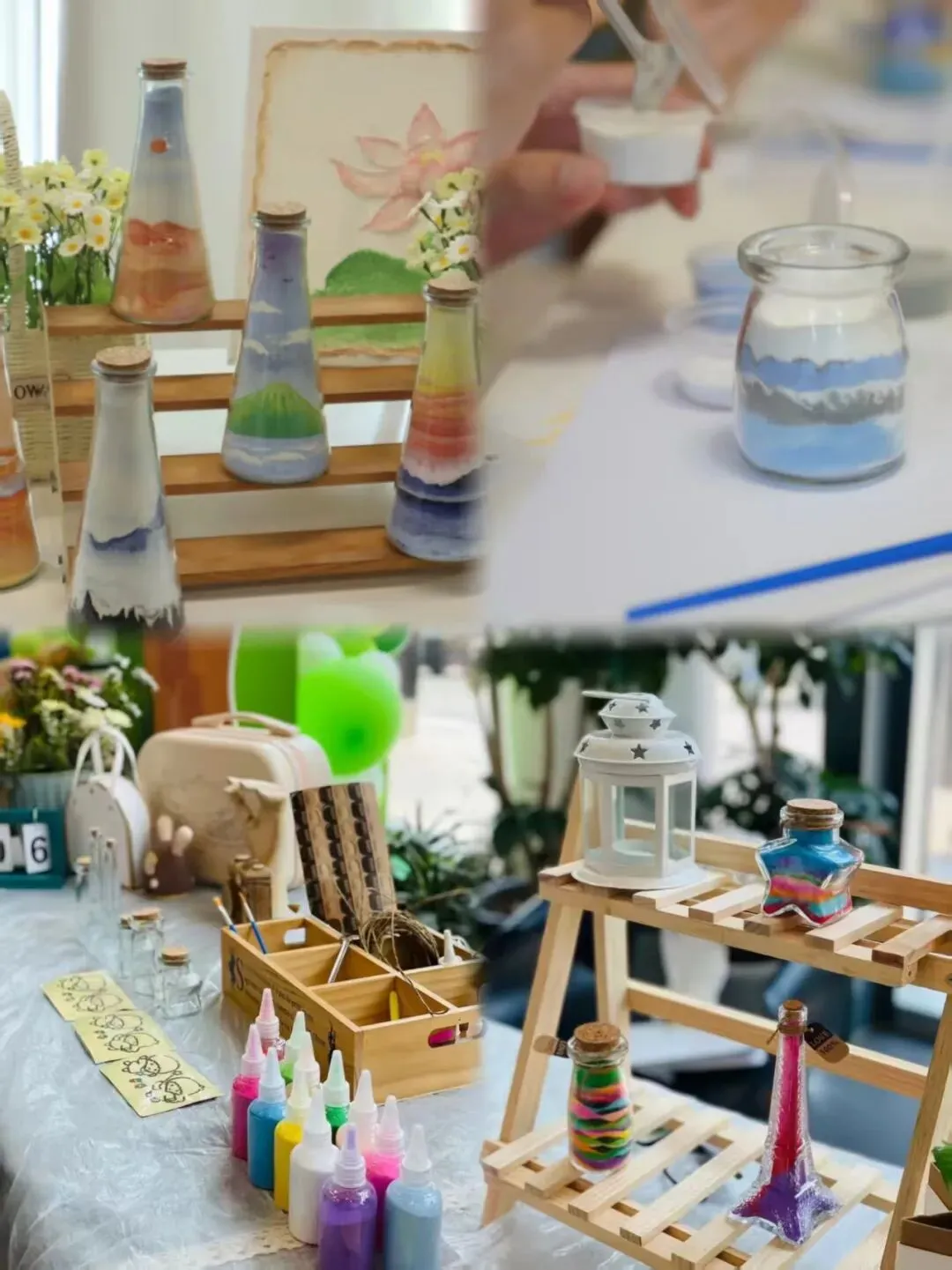 核心体验:将彩沙分层铺洒、勾勒肌理、搭配色调,再用器材压实,定格专属画面在色彩与层次的创造中,让思绪沉淀,收获一个静谧绚烂的微观世界。