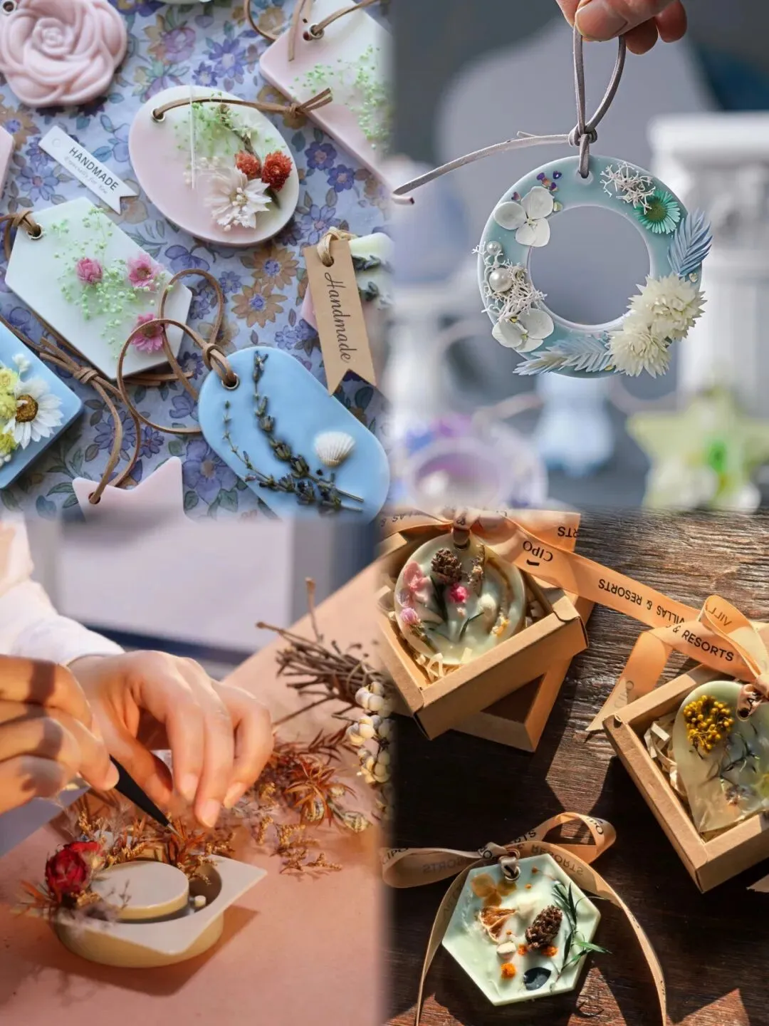 核心体验:亲手挑选干花与香氛精油,将大豆蜡融化、调香、注模,创作一片独一无二的香薰蜡片。在融蜡、调香的专注里,完成一次自我对话,带走一份持久陪伴的舒缓香气。