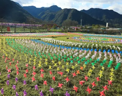 到达农芯谷、集合、合影留念、赠予丽人节玫瑰花