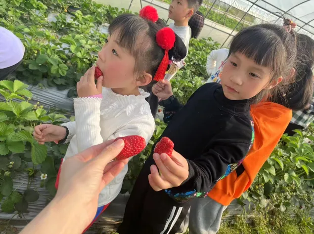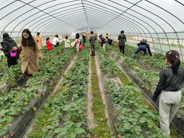 到达农庄、集合、合影留念、赠予丽人节玫瑰花