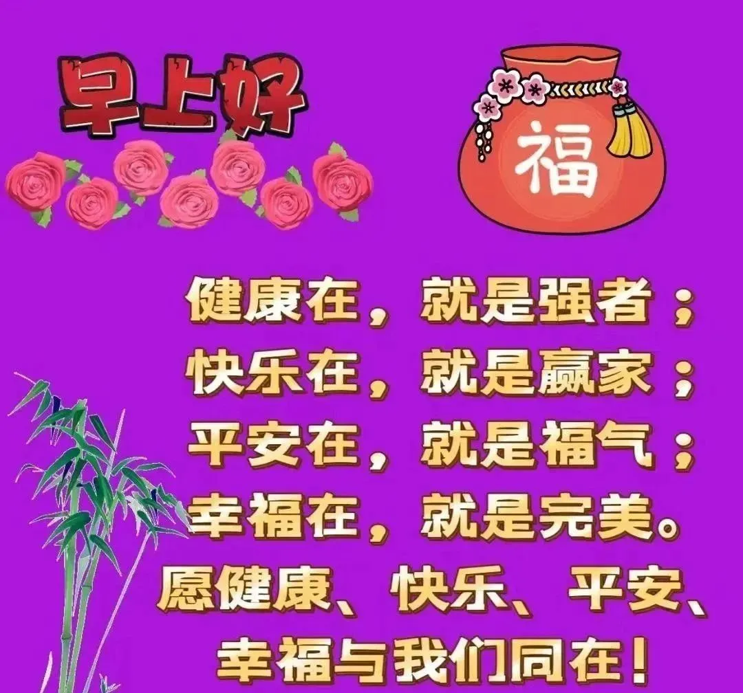 真情让咱们紧密相连 永不分离 相知让咱们彼此牵挂 念念不忘 余生让咱们快乐相伴 幸福满溢 情义让咱们用心珍惜 铭记于心 早上好啊 为你祈福愿每一天都充满美好和惊喜 愿咱们的情谊像这清晨的阳光一样温暖人心
