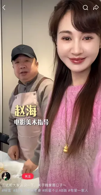 2月6日,演员杨雪发布视频公开老公身份,系知名美术指导赵海,其代表作包括《大明王朝1566》《天下无贼》《集结号》《黄金时代》《你好,李焕英》等,曾获香港金像奖最佳美术指导奖、金鹰奖最佳美术奖。