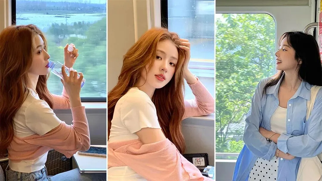 高铁车厢里的暖光、移动的窗外风景、松弛的坐姿站姿,都是自带氛围感的拍摄元素。这组写真没有刻意摆拍,而是跟着“出行”的自然节奏,捕捉托腮、喝水、躺靠的日常瞬间,把旅途的松弛感拍成了鲜活大片。