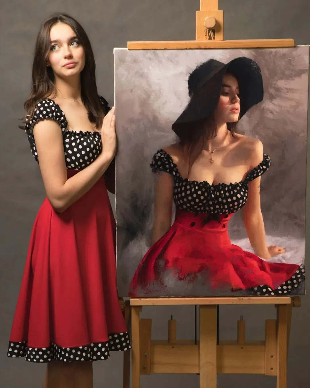 当前位置:首页>美女资讯>当画作与模特“同框”,让人傻傻分不清,究竟是人美,还是画美