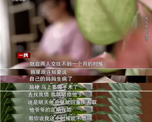 当时,身边的朋友都看出了不对劲,纷纷劝她不要再借钱给韩星,可深陷爱情漩涡的许知夏根本听不进去。