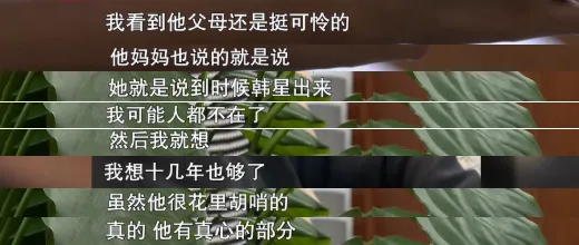 在她看来,韩星虽然欺骗了她,但在两人相处的过程中,她能感受到韩星对她也曾付出过真心。并且,她也知道,韩星的家人也只是普通人。