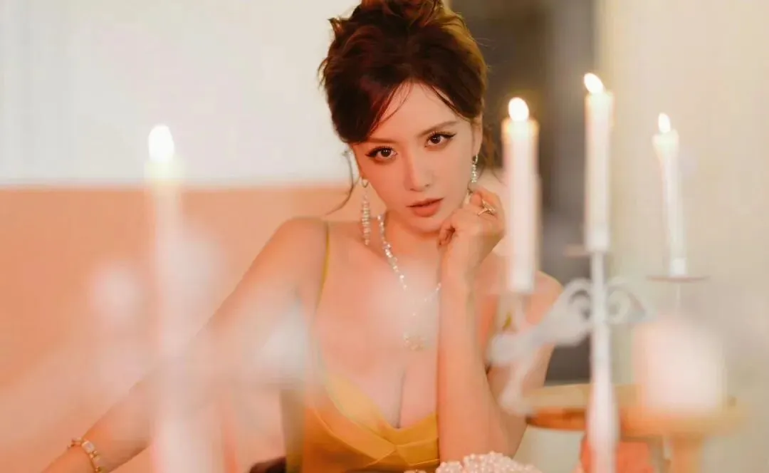 配饰的选择同样精准克制,没有喧宾夺主,却为整体造型增添了精致度。颈间的钻石项链以满钻链条搭配主石吊坠,主石的暖黄调与礼服色彩呼应,钻石的璀璨在烛光下闪烁,既修饰了颈部线条,又提升了造型的华贵感;长款钻石耳坠垂落在肩侧,随着动作轻轻摇曳,拉长了脸部线条,让五官更显精致立体;腕间的钻石手链与指间的钻戒相互呼应,在细节处彰显质感,让整套造型的精致度层层递进。