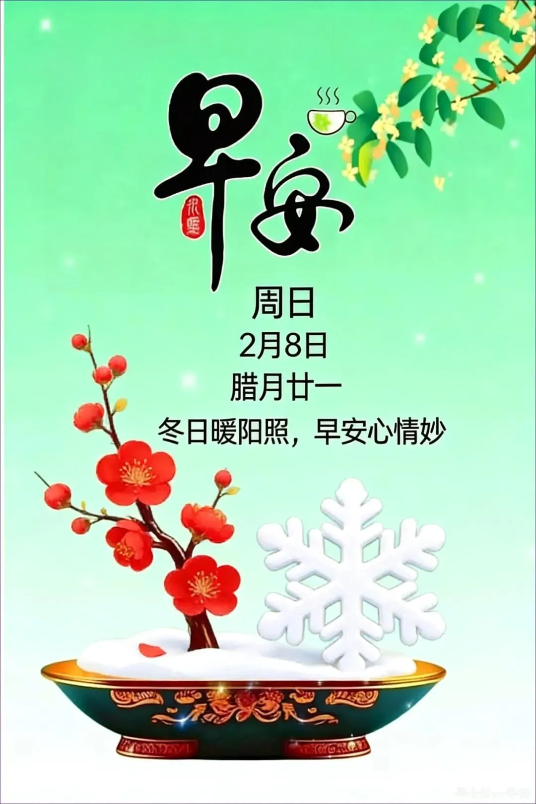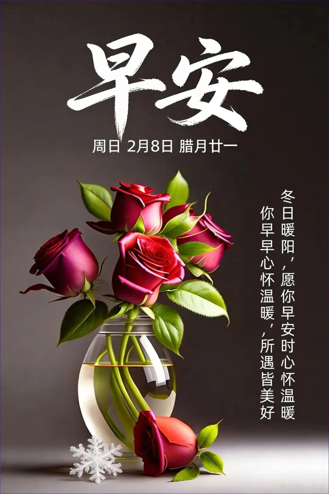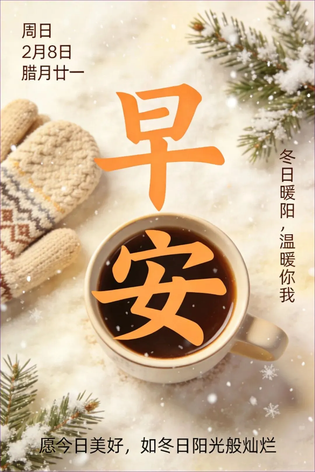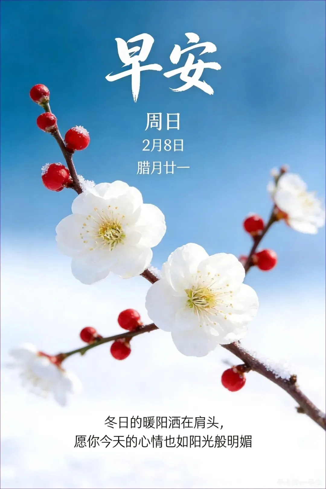 当前位置:首页>美女资讯>2026年2月8日 周日早安祝福语图片最新的 周日最美的早安祝福语图 周日早安祝福语大全