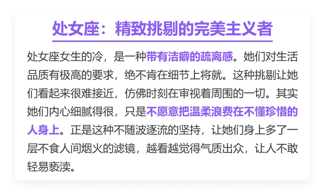在这.个喧嚣.的世界里,大家都.在拼命.表现热情,生怕被人.群冷.落。可偏偏.有那.么一类姑.娘,她们.不爱凑.热闹,也不.屑于讨.好谁,反倒因为.那股子.清冷劲儿,让人忍.不住.想多看.两眼。这真不.是装出.来的,而是骨子.里自带.的傲气.和底气。今天.咱们.就来.聊聊,哪四个星.座的女.生,越是.冷淡疏.离,越让人觉.得高贵迷.人。