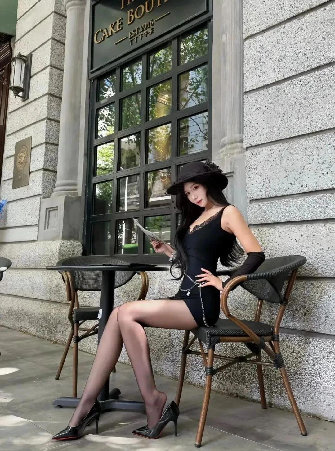 直到去年加班到凌晨,在公司楼下便利店看见个穿酒红吊带的姐姐,踩着细高跟拎着关东煮,跟老板笑着说 “加俩鱼丸,今天稿子过了”—— 那瞬间我突然醒了:“得体” 哪是别人定的规矩?是我把 “让所有人舒服”,当成了自己的任务。后来我开始慢慢 “抢地盘”:先从涂正红色口红开始,再到穿露肩衫开会,直到今天套上这双细高跟的鞋,坐在天桥边看车来车往。风把头发吹乱的时候,我摸了摸脖子上的项链,突然觉得 “好看” 哪儿是为了吸引谁啊?是我终于敢把 “我喜欢” 写在身上,像给心脏穿了件铠甲。前几天我母亲视频看见我这身,顿了顿说 “好像比以前精神”—— 你看,那些我们怕的 “议论”,其实大多是自己脑补的戏。就像今天这双丝袜,有人觉得 “太张扬”了,可我踩着它走过天桥时,连脚步都比平时稳。